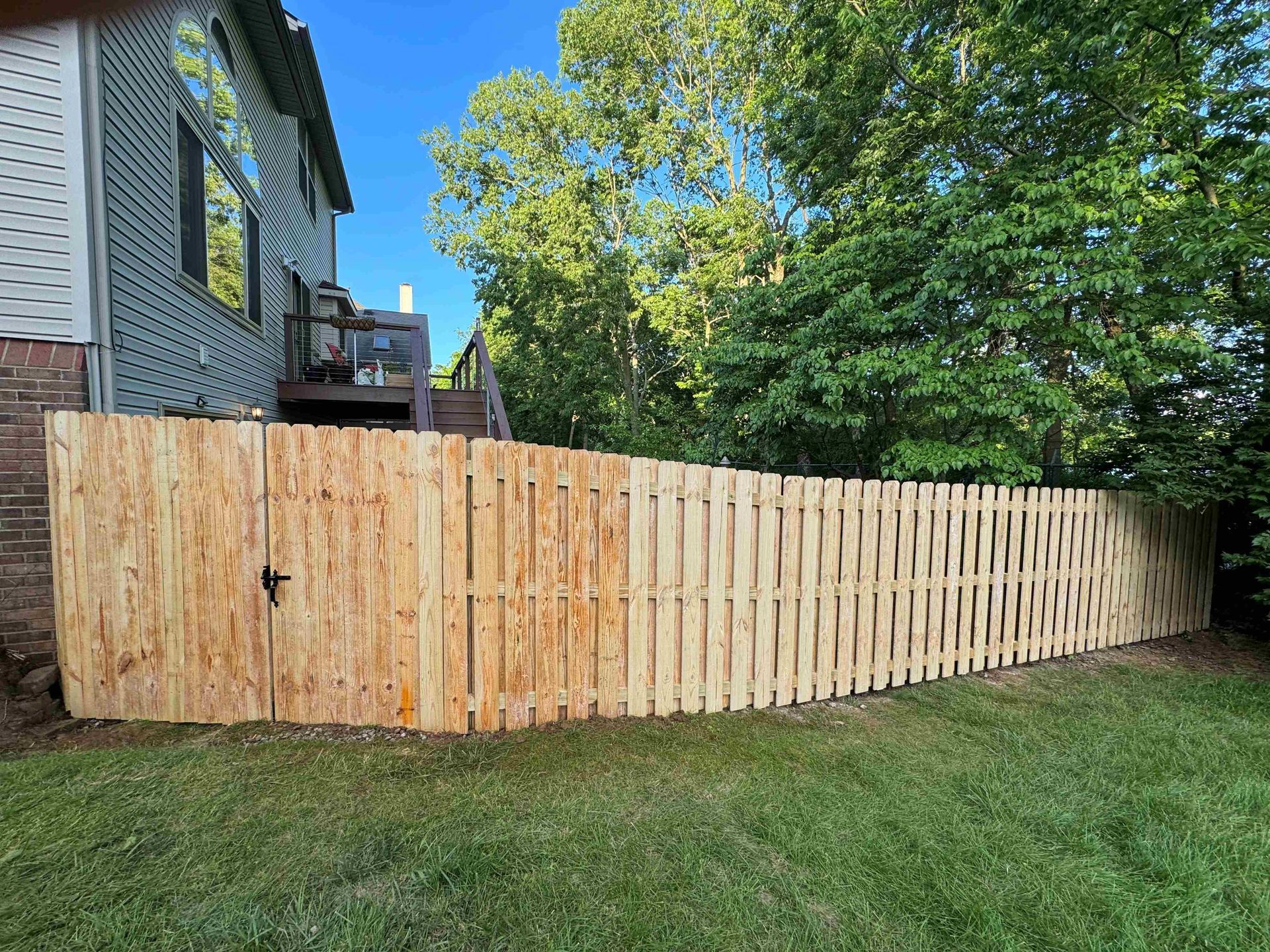 a wooden fence is in the backyard of a house — Lexington, KY — Chafin Fence LLC