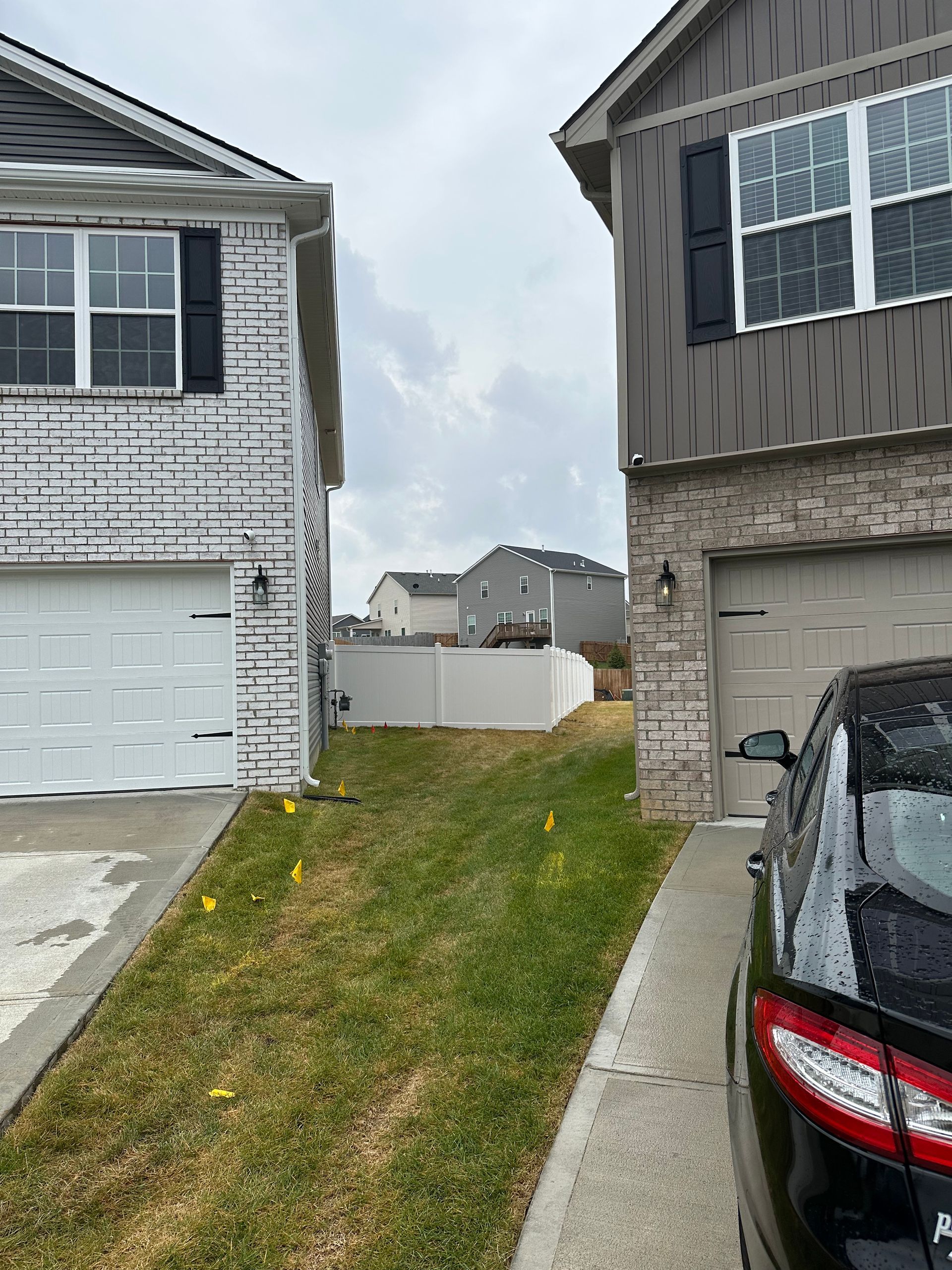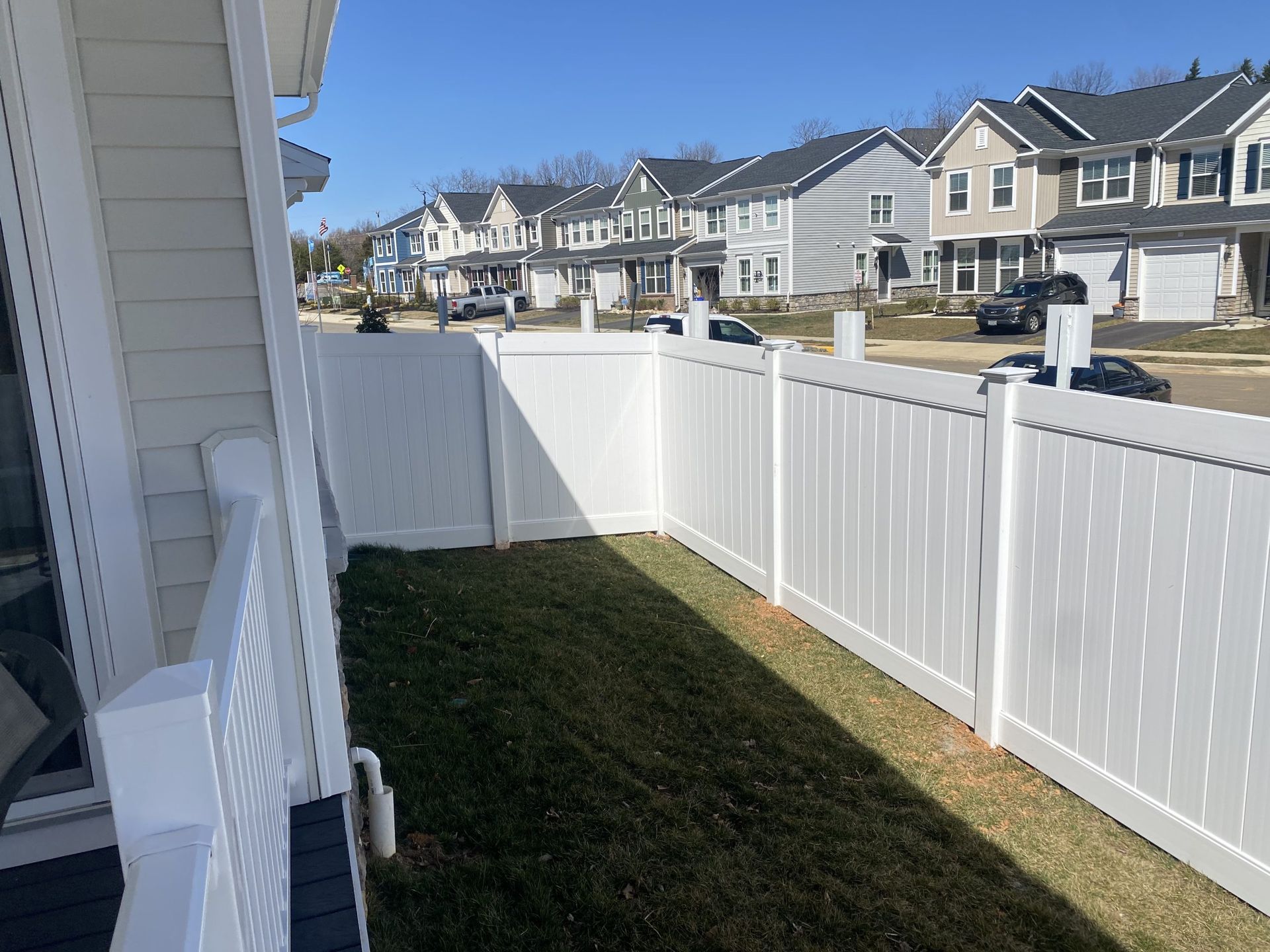 a backyard with a white fence and a house in the background — Lexington, KY — Chafin Fence LLC